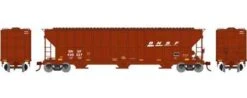 Athearn’s 3-bay car represents the common 4600 cu.ft. capacity version. The railroads looking to replace their aging 40’ box cars in grain service needed a modern hopper design – one that could operate within the tighter Plate B clearances for light branchline and industrial service. ACF’s design won them many contracts from a plethora of railroads. One can find these cars still in revenue service today in grain trains and other similar service.