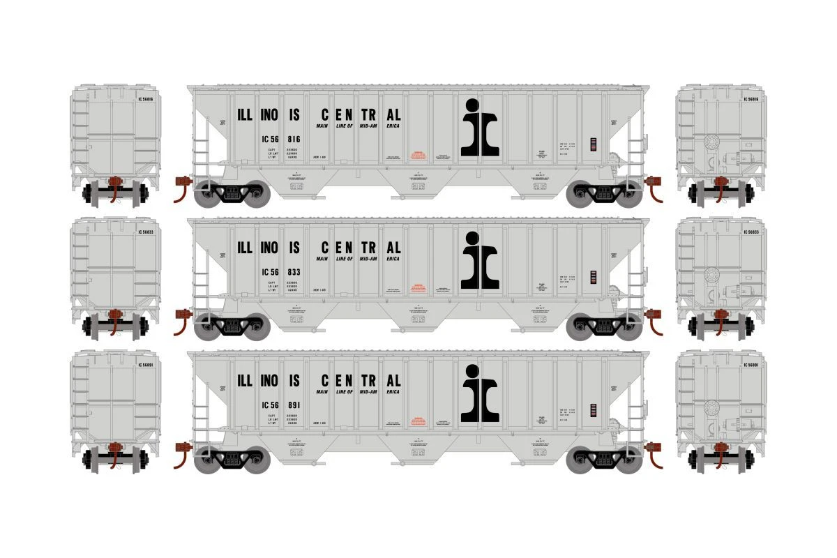 Athearn ATH18786 HO RTR PS 4740 Covered Hopper, Illinois Central 3-Pack