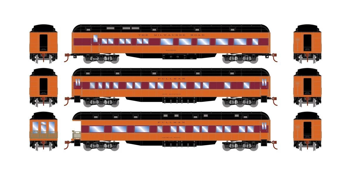 Athearn HO Heavyweight 3-Pack Diner/Coach/Observation, Milwaukee Road