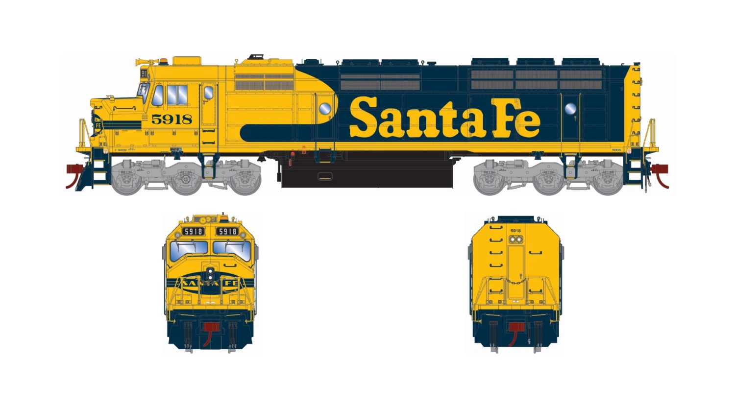 In By the early 1960’s the Electro-Motive Division (EMD) was at a big disadvantage. Their 567 engine, in use for over 20 years, had reached it’s peak at 2,500 horsepower in a turbocharged 16-cylinder version. EMD released a new 645 engine in 1966. The most powerful locomotive using this series of engine was the SD45, powered by a 20-cylinder turbocharged 645E engine producing 3600 horsepower. EMD then offered the V20 645E engine in the SDP45 in a standard hood configuration and longer frame to occomodate the steam generator needed for passenger service. The EMD SDP45 was a good passenger locomotive, but to the Santa Fe Railway it did not look the part. EMD therefore designed a lightweight “cowl” body to cover the locomotive, though it did not, as in earlier cab units, provide any structural strength, which remained in the frame. The cowl provided sleeker looks, better aerodynamics at speed, and allowed the crew to enter the engine compartment en route for diagnostics and maintenance. After sponsoring the development of the FP45 passenger locomotive, the Santa Fe requested a similar freight locomotive from Electro-Motive. Where the FP45 was an SDP45 wrapped in a full-width Cowl carbody, the new F45 was essentially an SD45 given the same treatment.