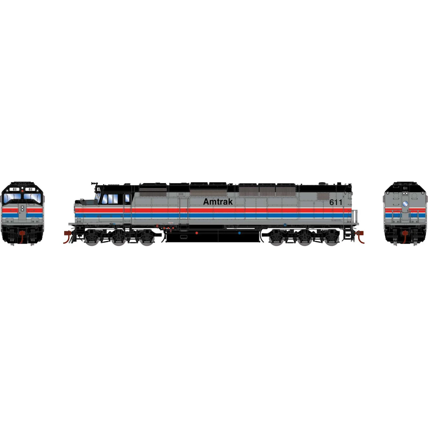 In the early 1970’s Amtrak needed new motive power to replace the rapidly aging locomotive fleet that they inherited. They approached EMD about creating a new locomotive to be used on most of the Amtrak routes around the country. The result was the 3,000 horsepower, steam generator equipped SDP40F. While initially a successful unit, a series of derailments soon led several of Amtrak’s host railroads to claim that these locomotives were faulty, banning them from use on their respective lines. Although this led to their early retirement, of many of the units made it into Amtrak’s Phase 2 paint scheme which we are featuring in this release.