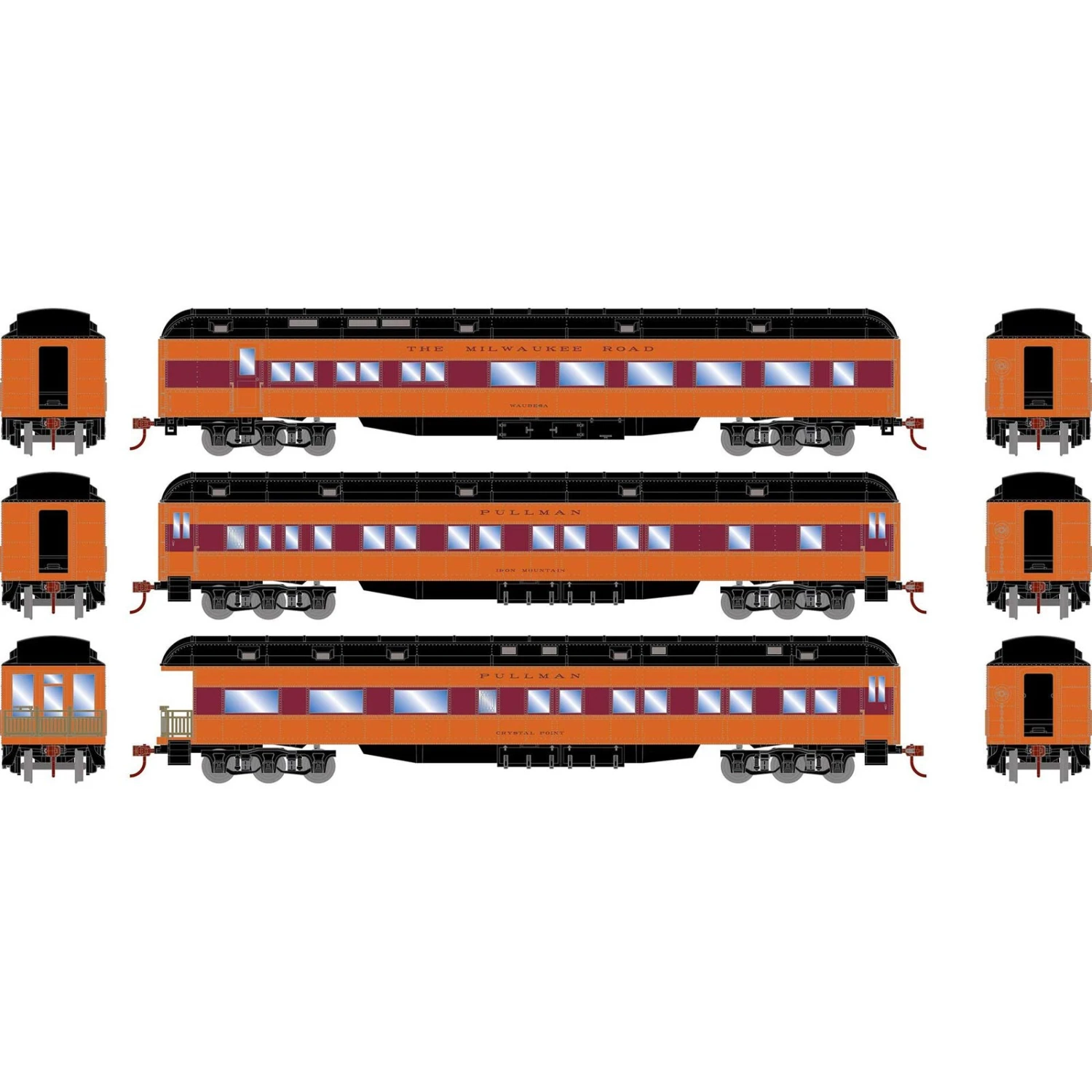 Athearn RTR 88233 HO Scale Heavyweight Passenger 3 Car Set Milwaukee Road MILW